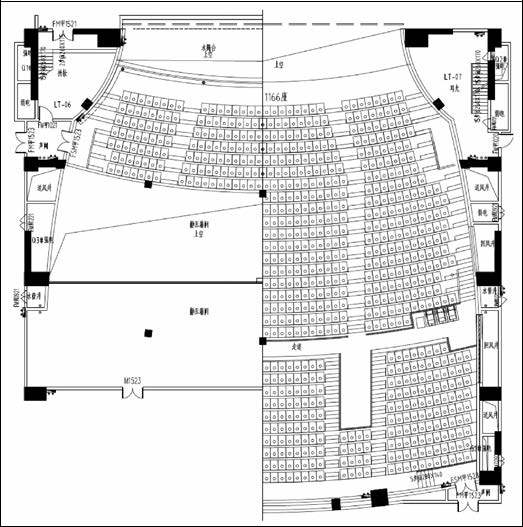 劇場完工後,對觀眾廳和舞台空場狀態下進行建聲測試,各測點布置圖見圖12。